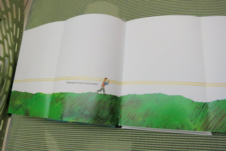 爸爸把很長很長的梯子架在很高的山上,不停往上爬