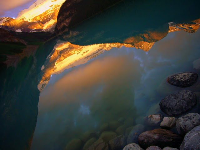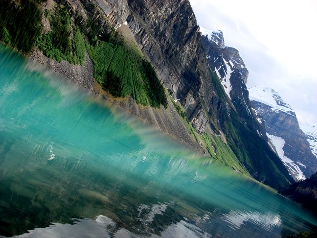 初到Lake Louise時,陰暗的天氣和過多的遊客讓我覺得這裡有負盛名。但黃昏時繞著湖走,意外看到倒映在湖中的漂亮綠色,才漸漸愛上這個湖。
