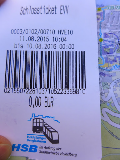 先買機場到Frankfurt main station的車票,再從Frankfurt Hbf買到Heidelberg的票。月台邊就有小台的賣票機器。可是怎麼輸入都沒有Heidelberg,跑去問information才知道原來要到裡面的機器去買。看起來應該是短程電車和長程火車是不同的系統。