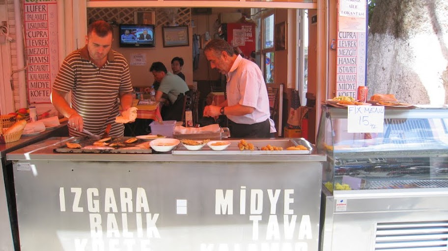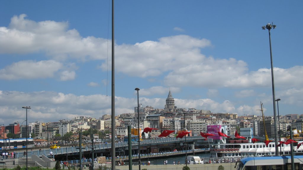 從Witt Istanbul旅館出來,下一個很陡的坡,就可以搭tram,通過 Galata Bridge到舊城區。橋上都是人在釣魚:D。右邊是Tram的投幣機和代幣。