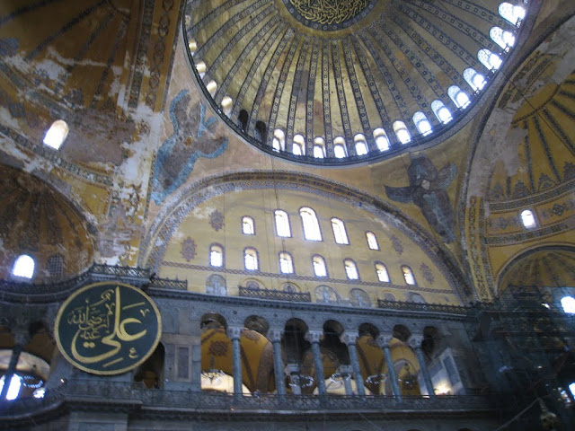 裡面有鷹架在整修,但還是很漂亮,可以看到被重新復原的聖人畫像和回教經文並存的奇景。
