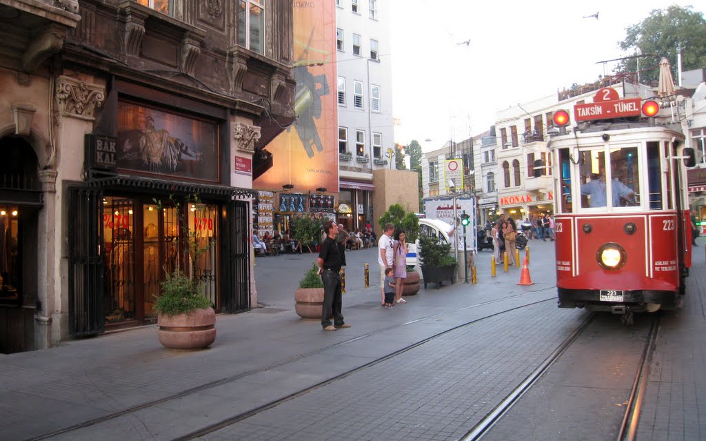 從Galata tower下來之後,就從附近的Beyoglu坐Nostalgic tram。(開的超慢的紅色懷舊小電車),經由最熱鬧的Istiklal Ave坐到Taksim square