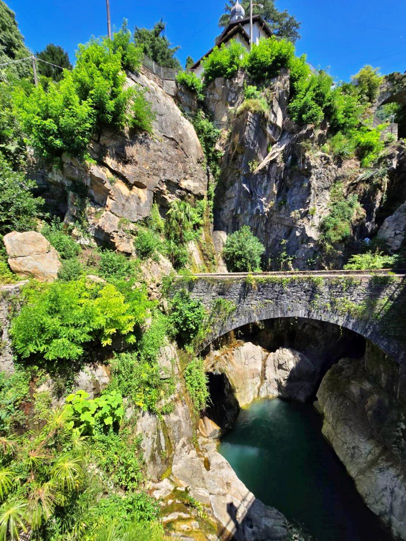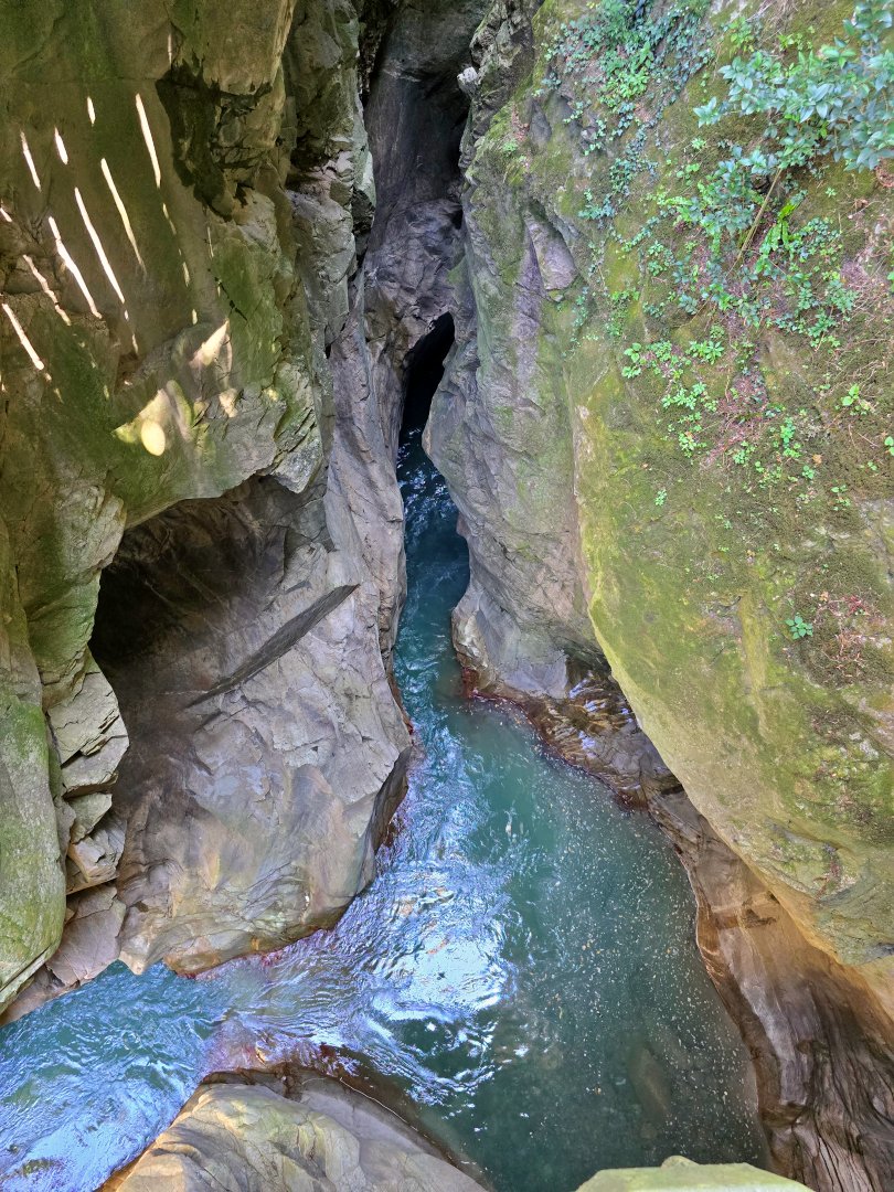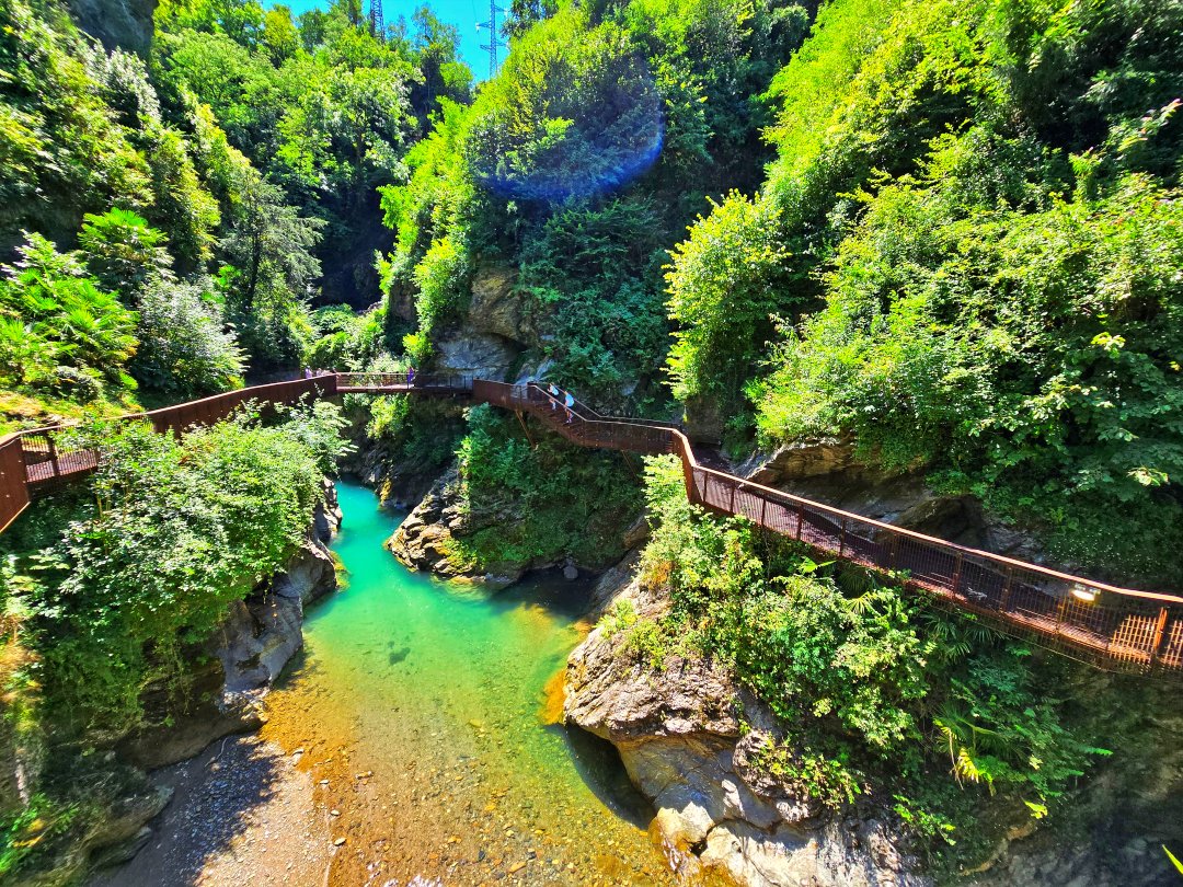進入峽谷入口,首先會先經過一座名為 Ca’ del Diavol魔鬼之屋 的古老塔樓。這座中世紀建築因流傳的神秘傳說而聞名,據說夜裡常有怪異聲響,因此被冠以惡魔之屋之名。如今塔樓已整修為小型展館,展示峽谷的地質歷史與地方故事。穿過塔樓後,懸崖步道蜿蜒於岩壁之間,水花飛濺、轟鳴回蕩,令人彷彿走進一條帶有魔法的秘境之路。