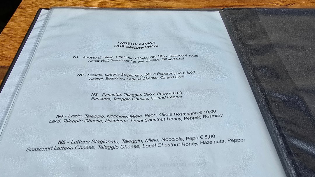 我們抵達時大約中午,因為不知道峽谷要參觀多久,路過看到這間Enoteca Bellanasco小餐館就想說先用餐好了。這間其實是葡萄酒吧,主要是賣葡萄酒的,也有賣簡單的輕食點心。