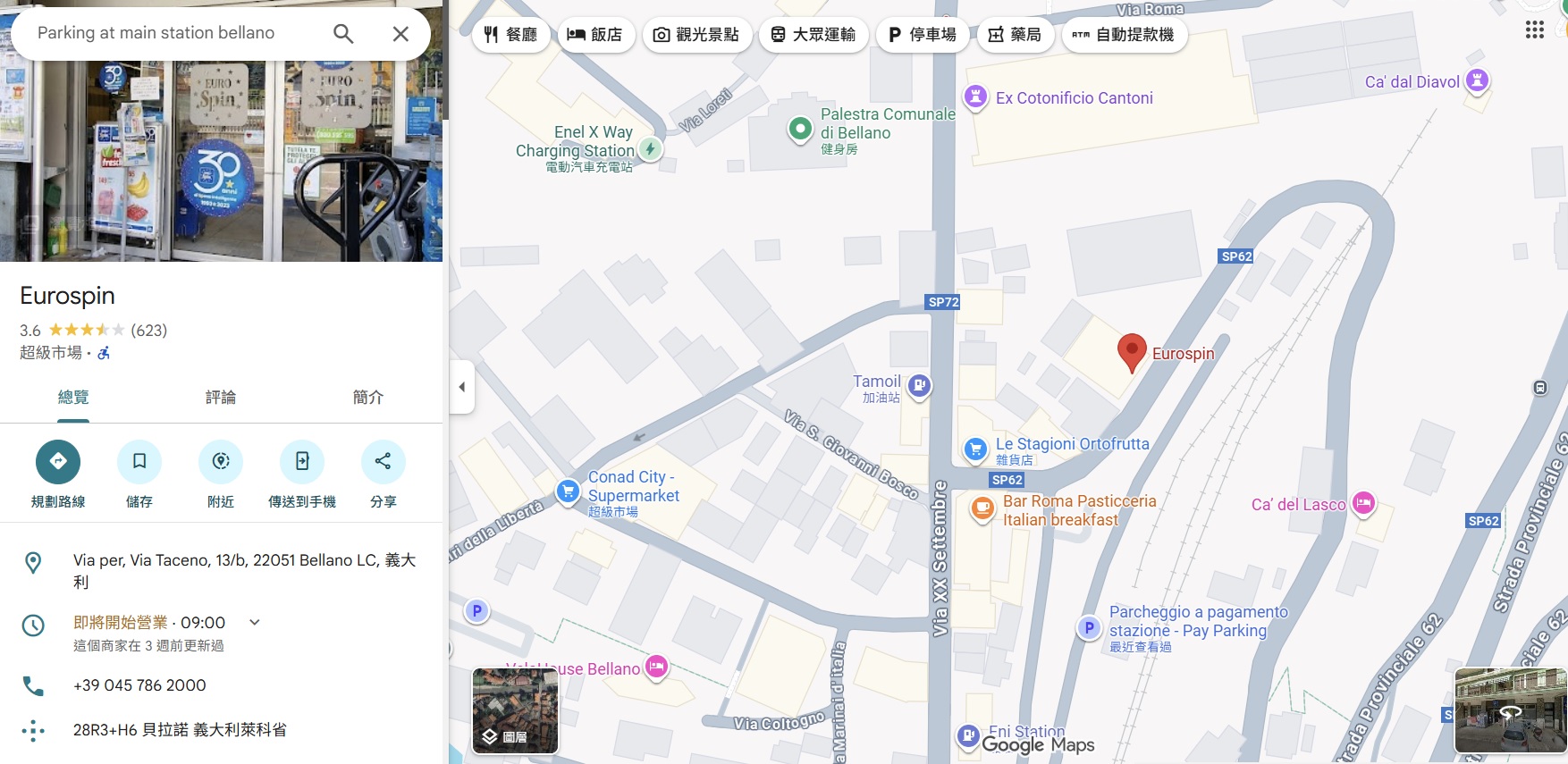 Bellano 停車場旁邊的超市 Eurospin