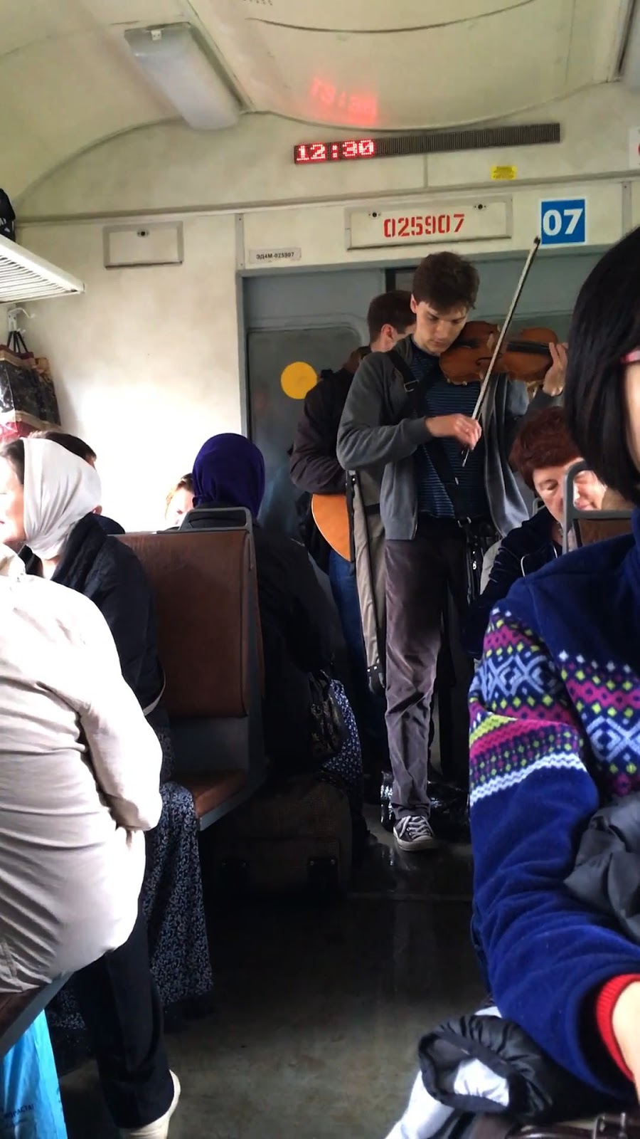 (沒料到會有那麼大的雨 我們的雨傘很小 XD) 回程去買火車票的時候,我有點緊張。賣票小姐用計算機打460,我很可憐的搖搖頭 XD。她看了一下別的車次,又用計算機打420 我很高興地點頭,把錢給她 XD 。當我買到回莫斯科的火車票420時真的超感動 XD 還好剛好夠用。不必在Sergiev Posad 當地找換錢的地方(這時我身上只剩下1元盧布 XDDD)。(還好我沒有把所有的零錢都給表演的人)(不然我們回莫斯科會不夠錢買火車票 XD)。回程坐的好像是快車,車上的冷氣好冷 又沒有購物台和音樂表演可以看XD。