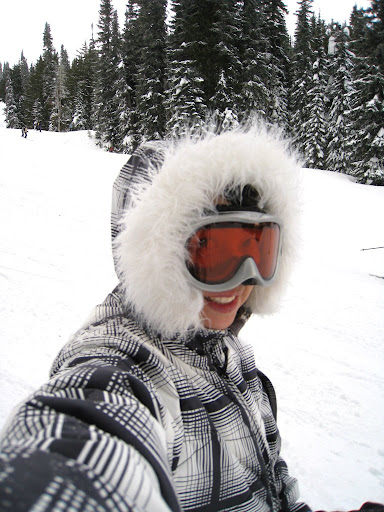 看這些照片這麼清晰,顏色這麼漂亮就知道一定不是我照的,是Mark Wu提供的照片:P。Stevens Pass非常漂亮,地形也比sumit有趣多了。有幾條我很喜歡的Trail坡度適中,不會太陡也不會太平。那時候,可以愉快地滑Stevens Pass的Blue Line並且欣賞美到不行的風景讓人很有成就感,瞬間真的會有愛上滑雪的感覺。我在這邊學會了(緩慢又不smooth的) 有點連續的的C形 (還沒到S形Linking Turns) XD。我不喜歡追求速度感 (奇怪那我去滑雪幹嘛?XD),是喜歡在坡上under control的感覺和欣賞風景 (在陡坡上要可以在控制之下慢慢滑也是需要一點點技巧的咩 :P)。當了媽媽之後覺得滑雪其實蠻危險的。不過還好,像我們這麼膽小肉腳又滑不快的,也危險不到哪裡去 :P。然後因為Lift要坐蠻久的,除了欣賞風景之外,我也可以有閒情逸致在上面拍照或是自拍了。