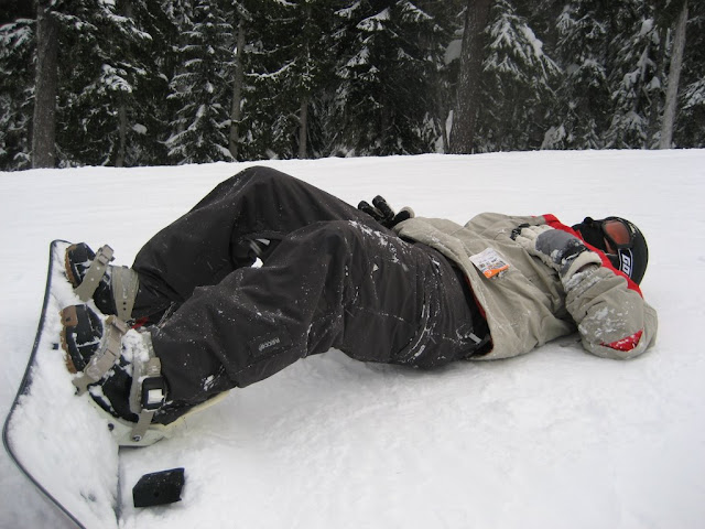 可是因為已經買了滑三次特價的票。如果都不去了會很浪費錢划不來。所以,在這麼慘痛的經驗下,還是再去了第二次跟第三次 (我真勇敢啊><)。不過學乖了,去買了護膝和屁股墊,真的超有效的,怎麼摔都不會痛! 可是缺點是屁股看起來會很大,還好我那時候蠻瘦的:P。然後也學會了先去雪場的網頁看雪況。雪況好我才要去。畢竟摔在軟綿綿的powder上跟摔在硬梆梆的冰塊上是不一樣的。還有還有,在去之前上網看了一下ABC of snowboarding簡易教學: Falling leaf, Heel-side, Toe-side等等簡單觀念,沒想到上網惡補還真的有用耶! 我在這裡學會了下Lift不會摔倒。Green Line順順的滑下來再也不會摔了。