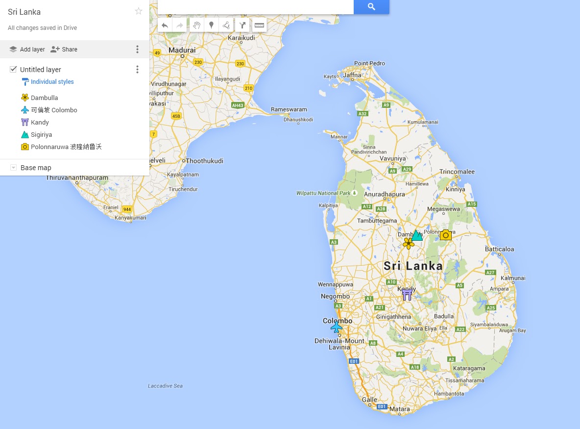 在地圖上標記行程的點