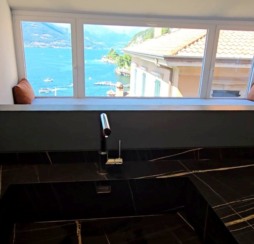 水槽正對著科莫湖的風景,可以在這樣的風景下準備早餐和晚餐,感覺很幸福。