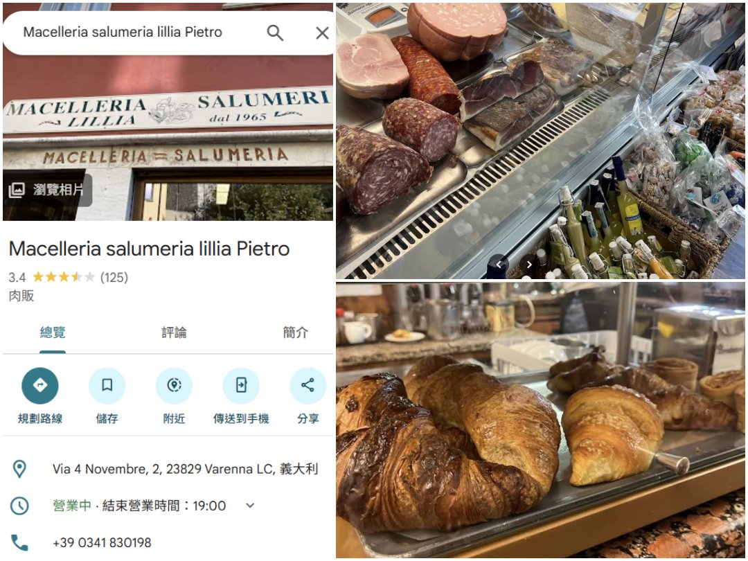 Macelleria salumeria lillia Pietro 肉舖 (地圖連結) 。這間有賣肉、起司、酒、麵包、三明治。