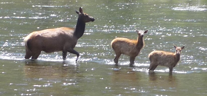 過了Madison要到West Entrance的路上,看到這群鹿要過河。